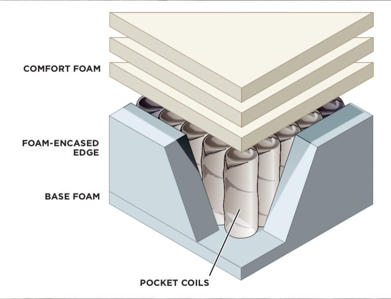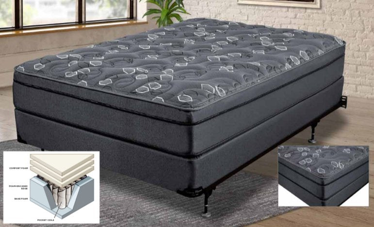 Brand new medium firm 12" pocket coils, foam encased and triple comfort foam support.