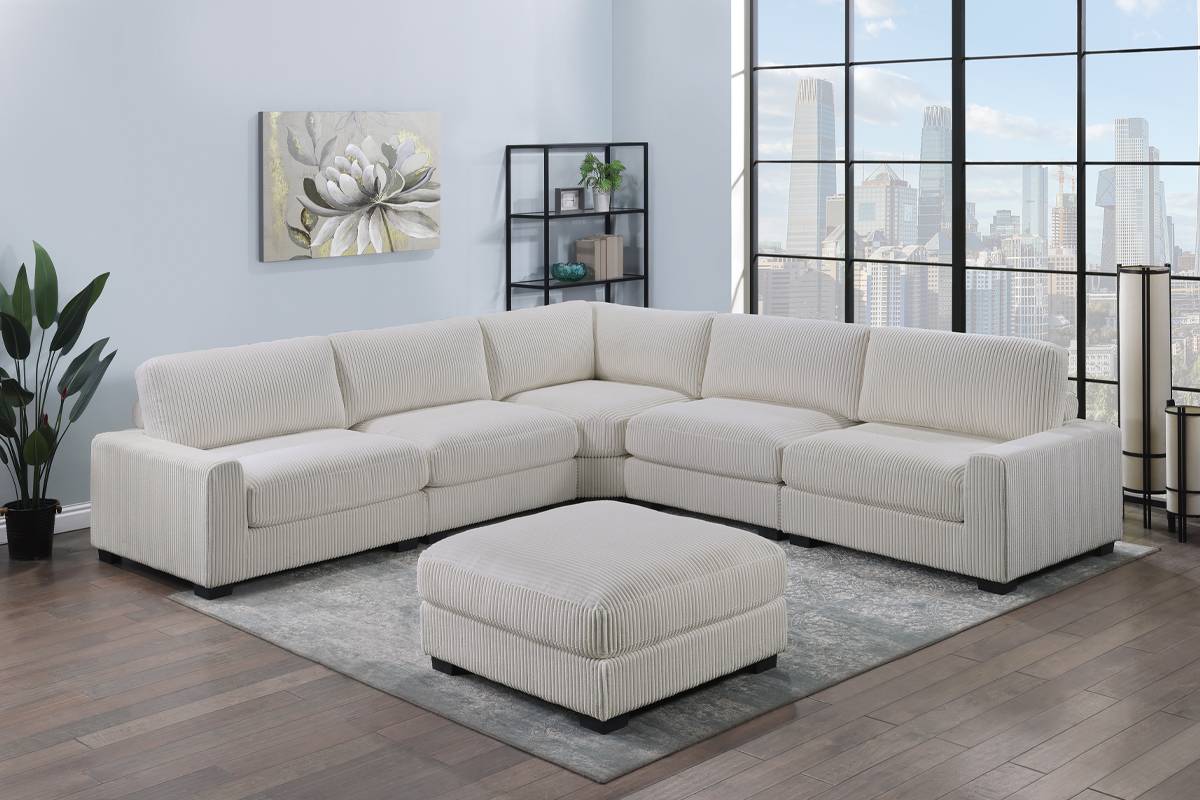 An attentively designed living space deserves a seating arrangement to match. With the flexibility of separate pieces, you can create almost any shape, letting you design your furniture to suit your living room needs. This compact modular sectional stands in low legs that are just barely visible giving it its modern look. It’s wrapped in super soft corduroy in a warm neutral hue that makes it even more inviting to family and friends.