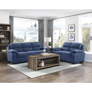 A modern profile serves to lend visual contrast and support to the plush seating and pillow-top arms of the Holleman Collection. The dark gray textured fabric cover acts as a neutral palette for your decorative preferences. Channel tufting accents the lower seatbacks of the sofa, love seat and chair providing subtle accent to the collection.