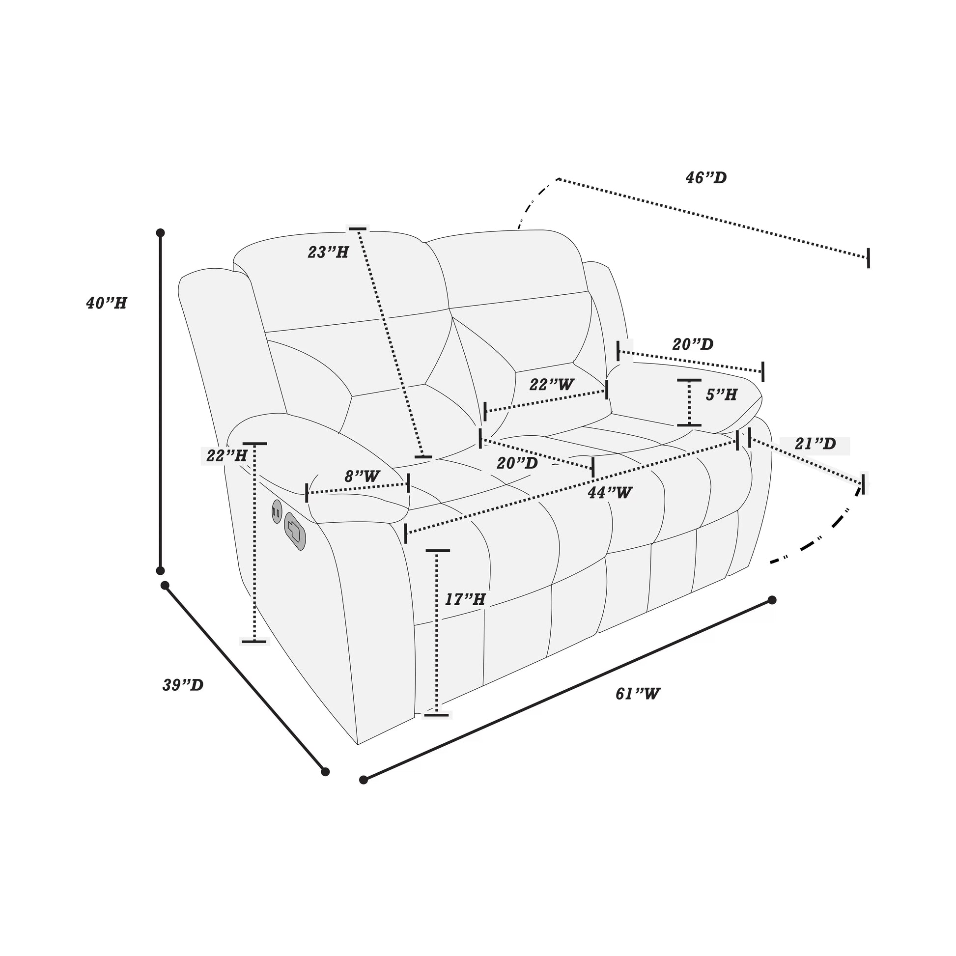 esigned to seat three, this Sofa is the epitome of comfort, featuring arm pillows that add an extra layer of coziness to your lounging experience. The back cushion is not just plush but also boasts a headrest designed with horizontal tufting, ensuring that your entire body enjoys the luxurious comfort this recliner has to offer. The reclining handle, conveniently located on the side, allows for seamless and easy reclining. Just a simple pull, and you're on your way to your favorite lounging position. Charge your phone without having to leave the comfort of your seat, convenient USB ports right next to the reclining handle. The material used is none other than exquisite velvet, adding a touch of elegance to your space.