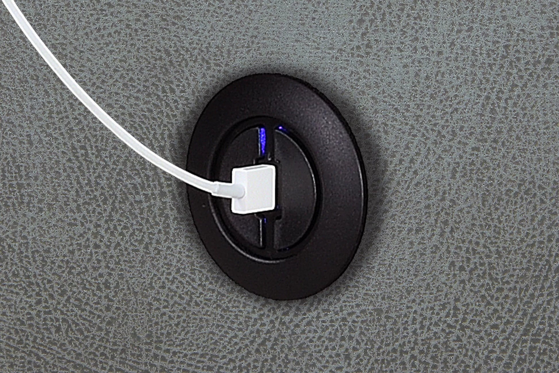 New power reclining sectional with USB chargers, cup holders and consoles.