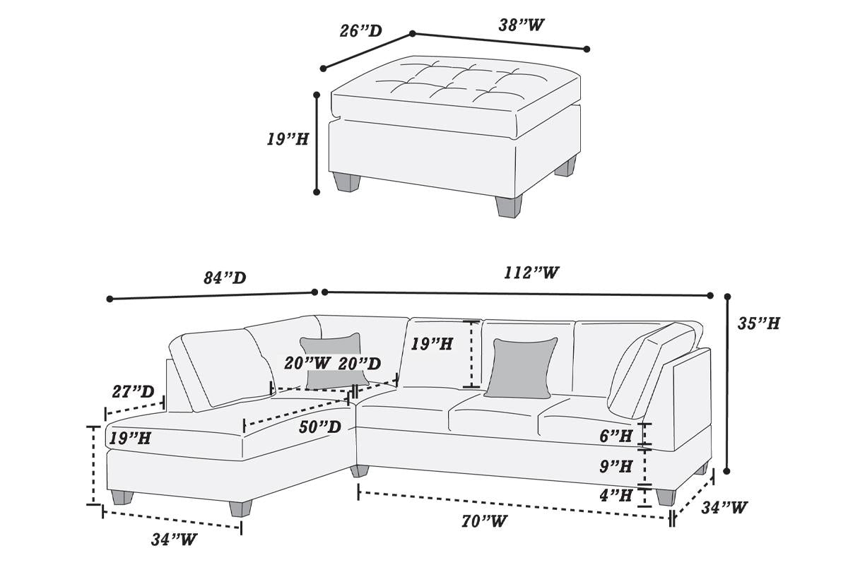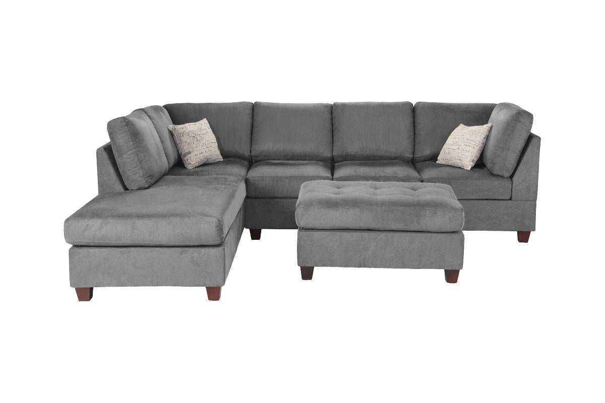 Explore this welcoming classic plush 3-piece sectional that offers top comfort for your home living space. Fashioned with plush seating and back support cushions, this high-quality sectional includes a reversible chaise, sofa, and cocktail ottoman. Each piece of furniture is hoisted with wide low-profile leg supports.