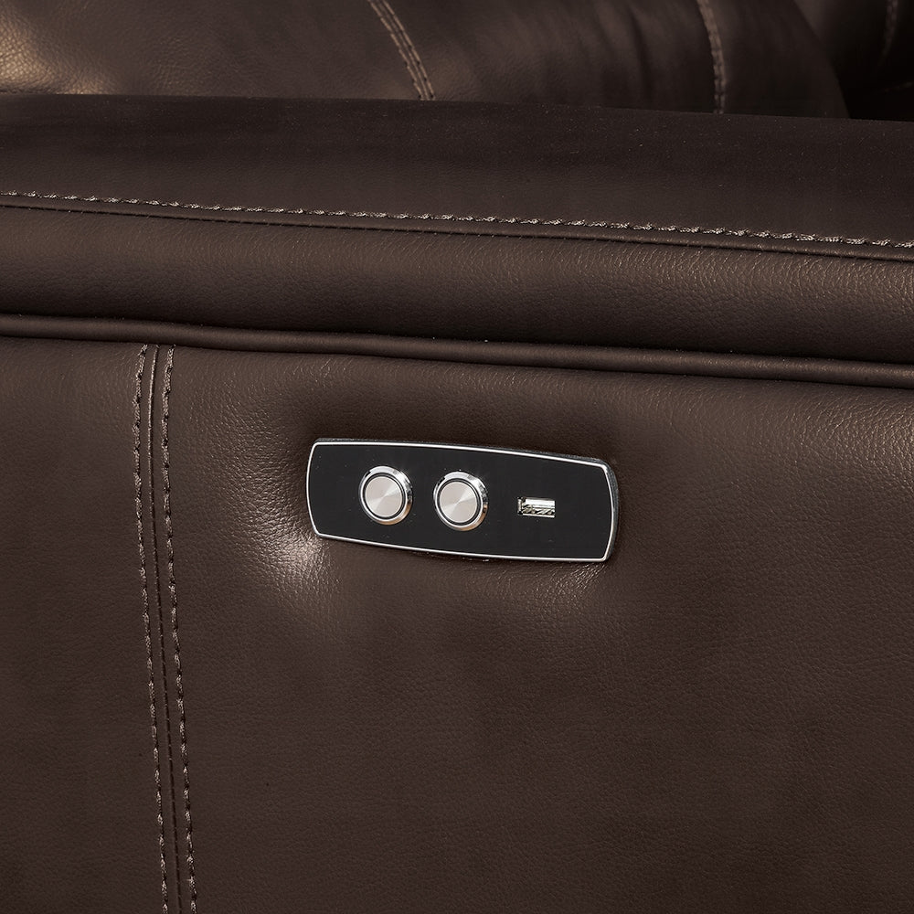 The Saul sectional collection offers luxurious contemporary looks and multi-function features. Fully wrapped with smooth leather-aire and framed with hard wood, quality and durability are guaranteed for your enjoyment. Features two power motion reclining seats and its complemented by USB Charging Docks provided at both ends, making it come in handy for you to charge any handheld devices